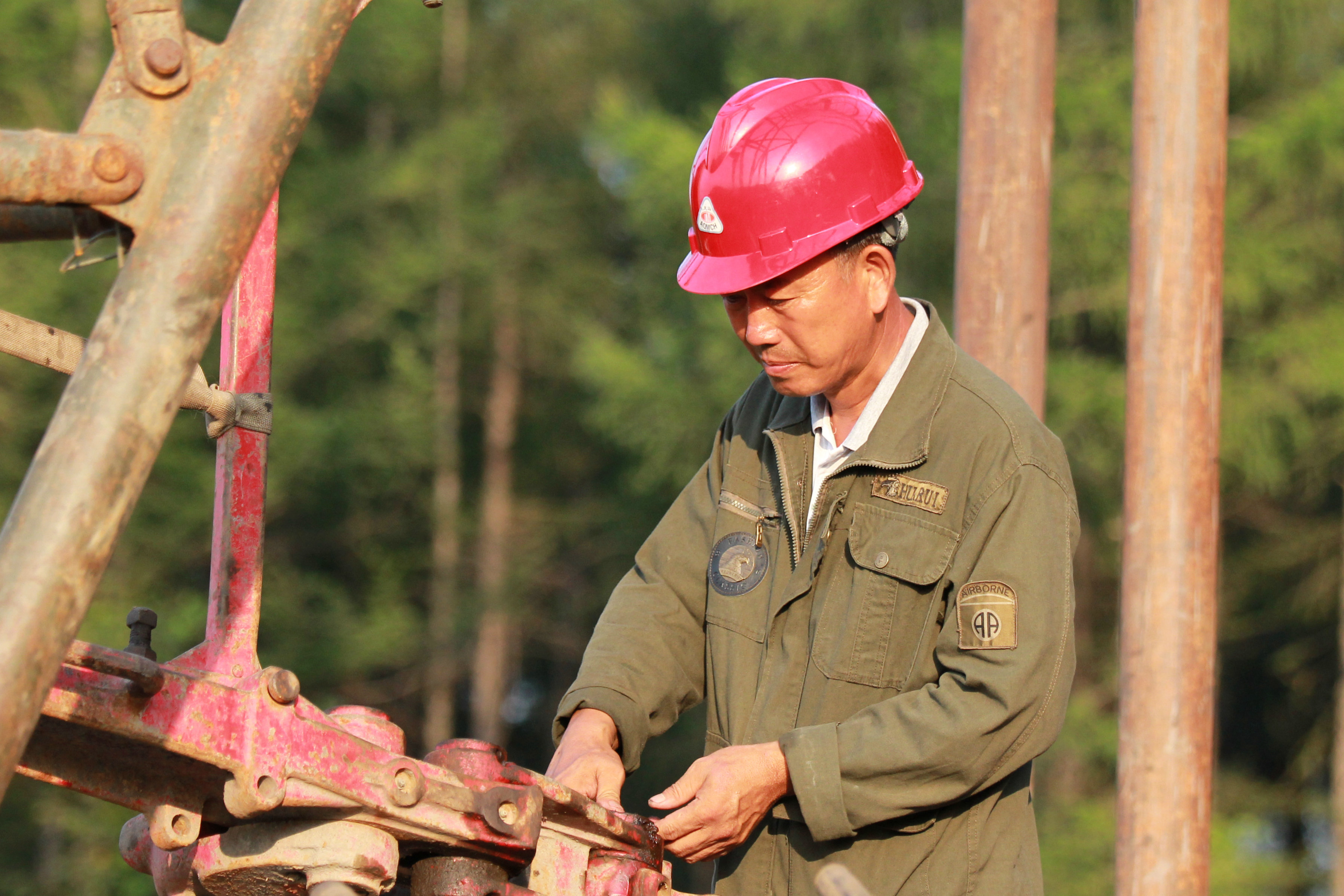 陈合才在钻机施工现场检查吊钳清静状态