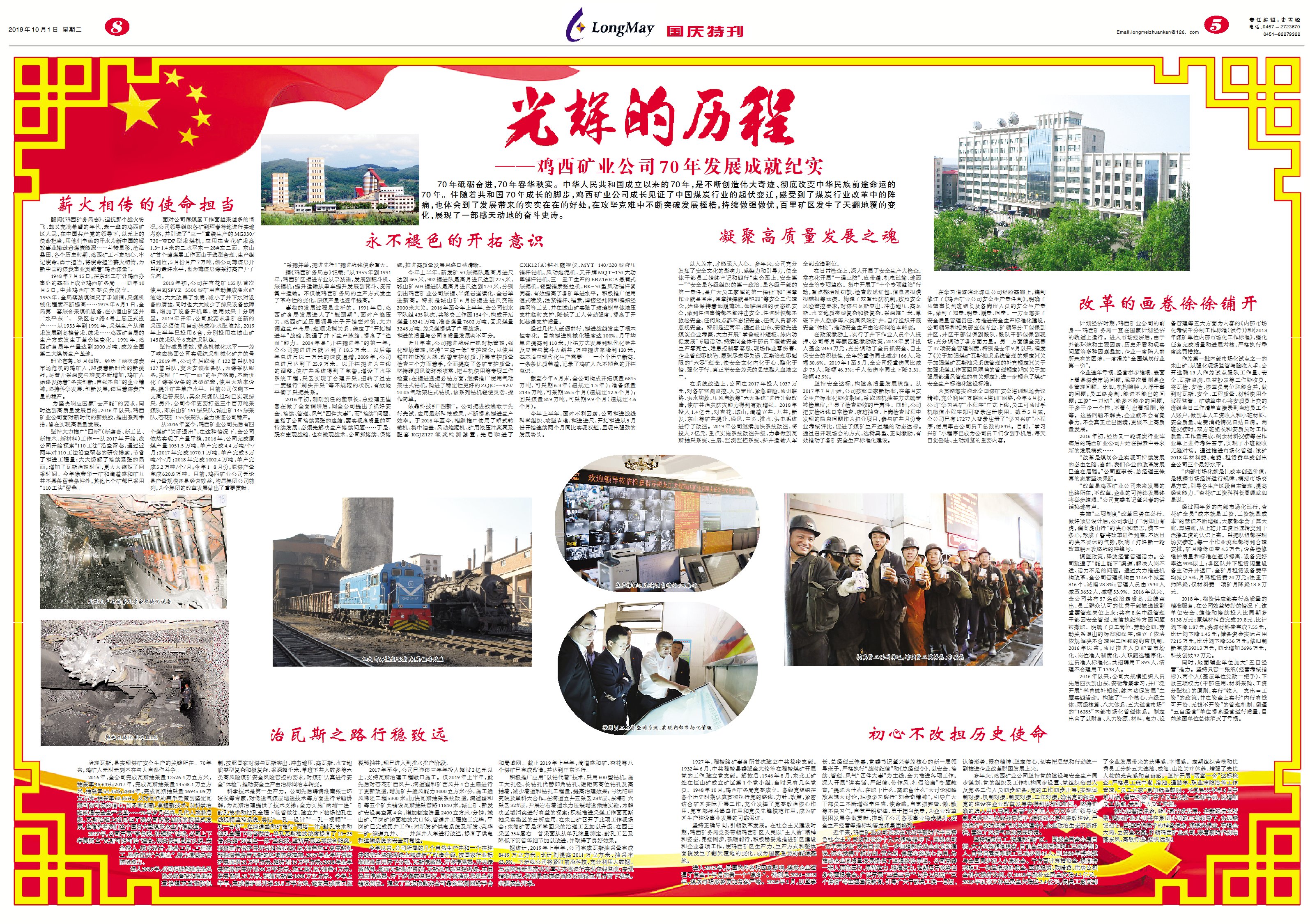 ¡¡¡¡70ÄêíÆí·ܽø£¬70Äê´º»ªÇïʵ¡£ÖлªÈËÃñ¹²ºÍ¹ú½¨ÉèÒÔÀ´µÄ70Ä꣬ÊÇÒ»Ö±´´Á¢Î°´óÊÂÒµ¡¢³¹µ×¸Ä±äÖлªÃñ×åǰ;ÔËÆøµÄ70Äê¡£Åãͬ׏²ºÍ¹ú70ÄêÉú³¤µÄ½Å²½£¬¼¦Î÷¿óÒµ¹«Ë¾Éú³¤¼ûÖ¤ÁËÖйúú̿ÐÐÒµµÄÉý³Á±äǨ£¬¸ÐÊܵ½ÁËú̿ÐÐҵˢÐÂÖеÄÕóÍ´£¬Ò²Ìå»áµ½ÁËÉú³¤´øÀ´µÄʵ×ÅʵÔÚµÄÀûÒæ£¬ÔÚ¹¥¼á¿ËÄÑÖÐÒ»Ö±Í»ÆÆÉú³¤èäèô£¬Ò»Á¬×öÇ¿×öÓÅ£¬°ÙÀï¿óÇø±¬·¢ÁËÌì·­µØ¸²µÄת±ä£¬Õ¹ÏÖÁËÒ»²¿¸ÐÌ춯µØµÄ¶·ÕùÊ·Ê«¡£