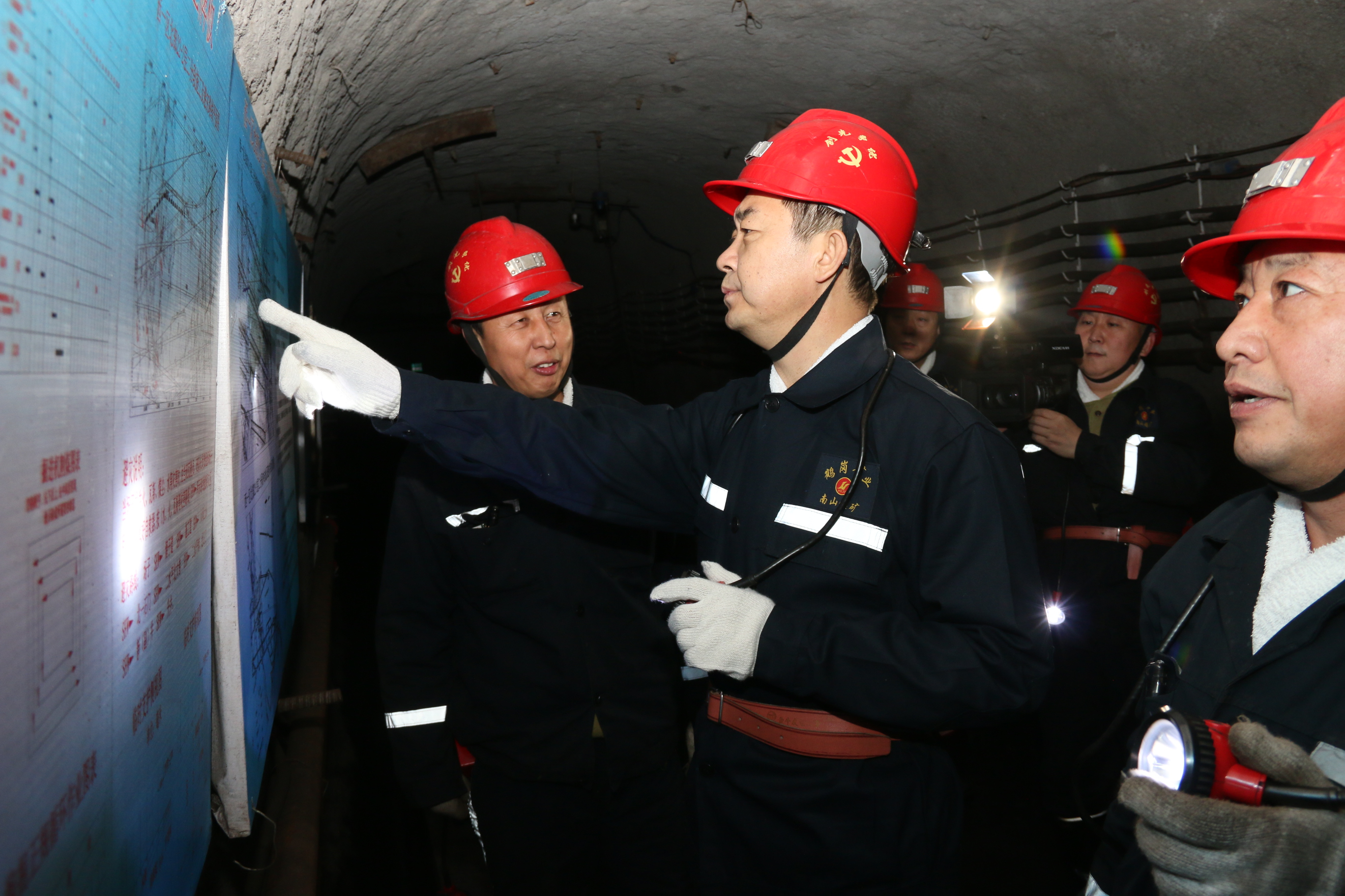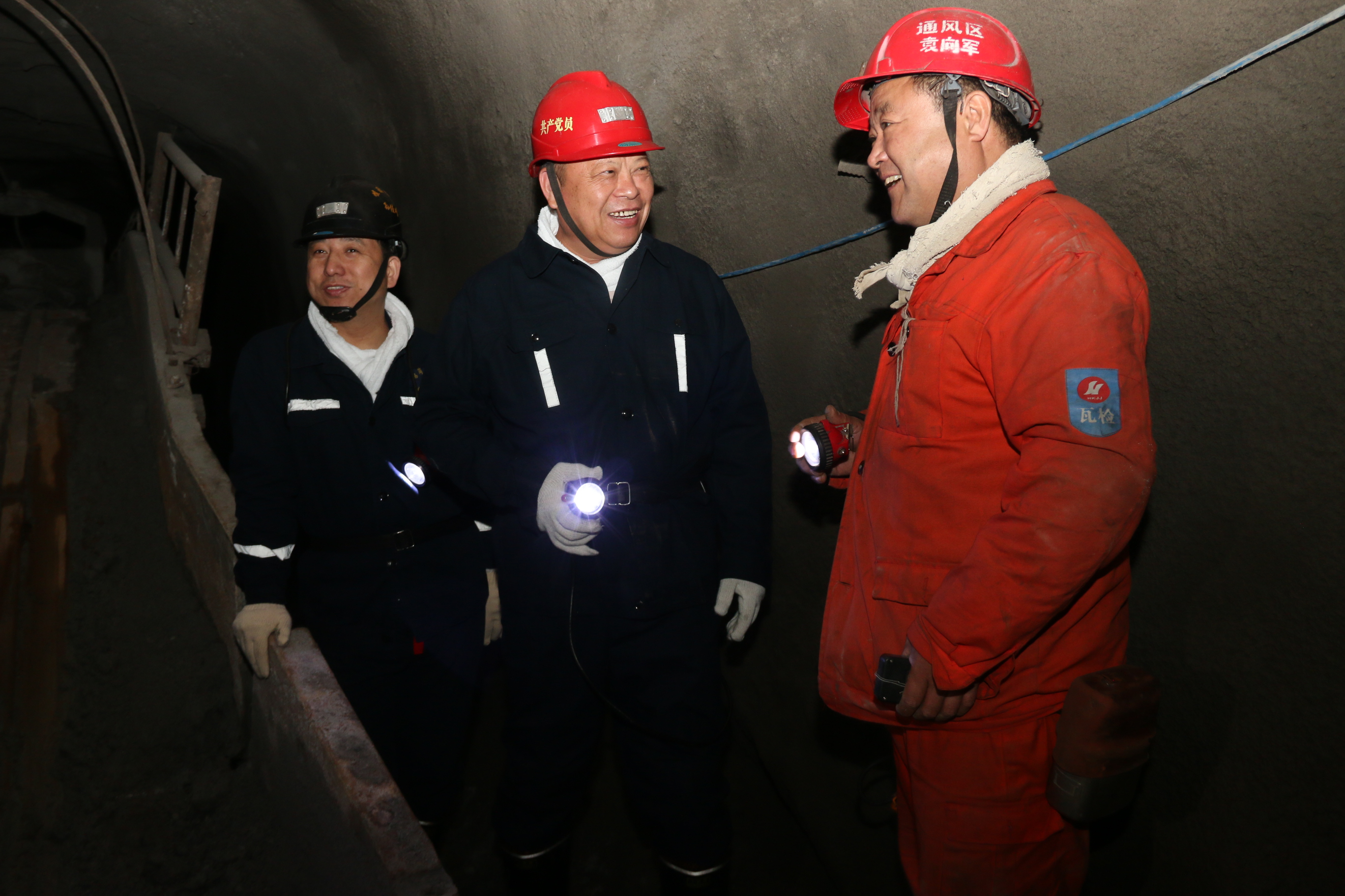 ×óͼΪº×¸Ú¿óÒµ¹«Ë¾¶­Ê³¤¡¢×Ü˾ÀíÁõÅô·ÉÉîÈ뾮ϼì²éÇå¾²ÊÂÇ飬ÓÒͼº×¸Ú¿óÒµ¹«Ë¾µ³Î¯Êé¼ÇÕÅÉúÉîÈëÏÖ³¡¼ì²éÇå¾²ÊÂÇé ¡£