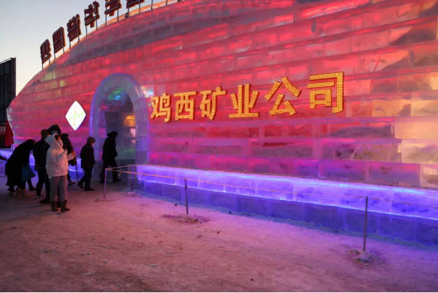 这组大型冰雕以独具匠心的设计,吸引了众多市民的眼光,它以“斗争是前进之力、立异是生长之源”为设计主旨,融矿山文化秘闻与现代冰雕艺术于一体,以矿领班像和井下设施以及矸石山等为轮廓,充分展示鸡西百余年开采史和七十余年建企史中所走过的斗争生长历程、厚重的企业文化、崭新的精神风貌,寓意着公司基业永固、前途似锦,人企平安、吉祥如意,彰显了鸡矿公司蒸蒸日上的生长远景和员工高昂向上的精神风貌。