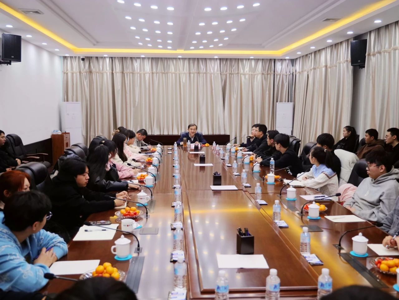 刘鹏飞从衣食住行等多方面与新入职大学生举行面扑面座谈交流,详细相识他们事情、生涯情形。