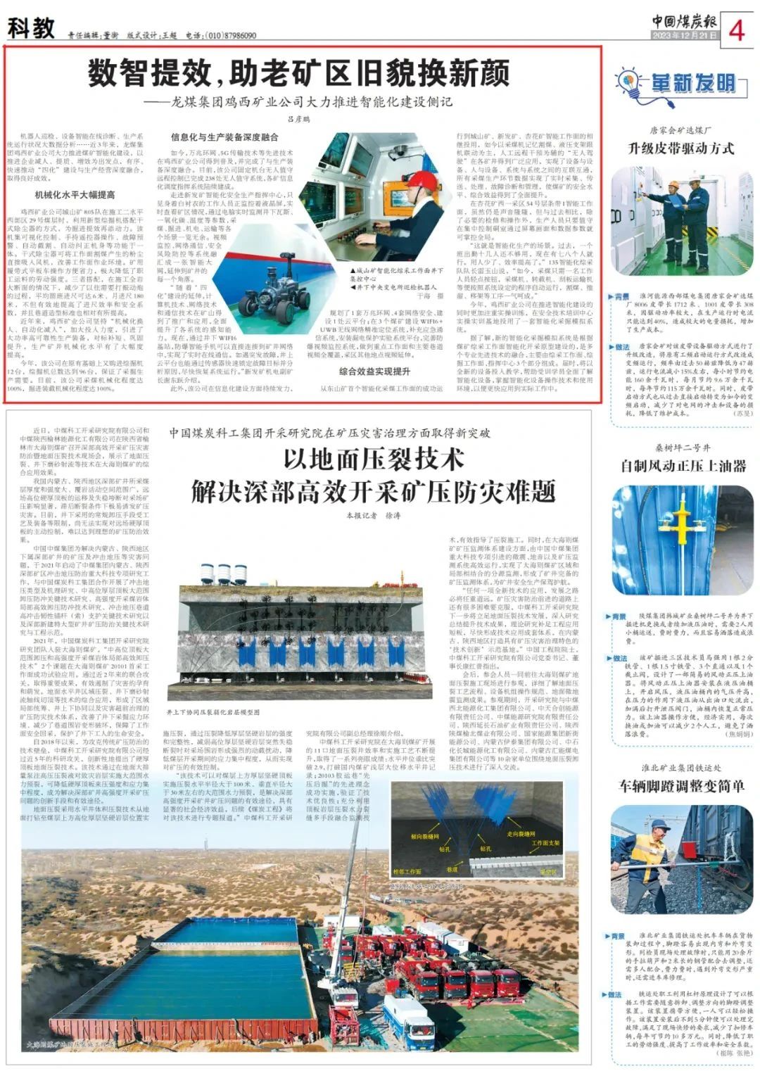 ´Ó¶«É½¿óÊ׸öÖÇÄÜ»¯²ÉúÊÂÈËÇéµÄÀÖ³ÉÔËÐе½³Çɽ¿ó¡¢Ð·¢¿ó¡¢ÐÓ»¨¿óÖÇÄÜÊÂÈËÇéµÄÏà¼ÌͶÓã¬ÏÖÔÚÒÔ²Éú»úÓ°Ïó¸îú¡¢ÒºÑ¹Ö§¼Ü¸ú»úÁª¶¯ÎªÖ÷£¬È˹¤Ô¶³Ì¸ÉԤΪ¸¨µÄ¡°ÎÞÈ˼ÝÊ»¡±ÔÚ¸÷¿ó¾®»ñµÃÆÕ±éÓ¦Óã¬ÊµÏÖÁË×°±¸Óë×°±¸¡¢ÈËÓë×°±¸¡¢ÏµÍ³Óëϵͳ֮¼äµÄ»¥Áª»¥Í¨£¬ËùÓвÉúÉú²ú»·½ÚÊý¾ÝʵÏÖÁËʵʱÊÕÂÞ¡¢´«ËÍ¡¢´¦Öóͷ£¡¢¹ÊÕÏÕï¶ÏºÍÖÎÀí£¬Ê¹Ãº¿óµÄÇ徲ˮƽ¡¢×ÛºÏÐ§Òæ»ñµÃÁËÖÜÈ«ÌáÉý¡£