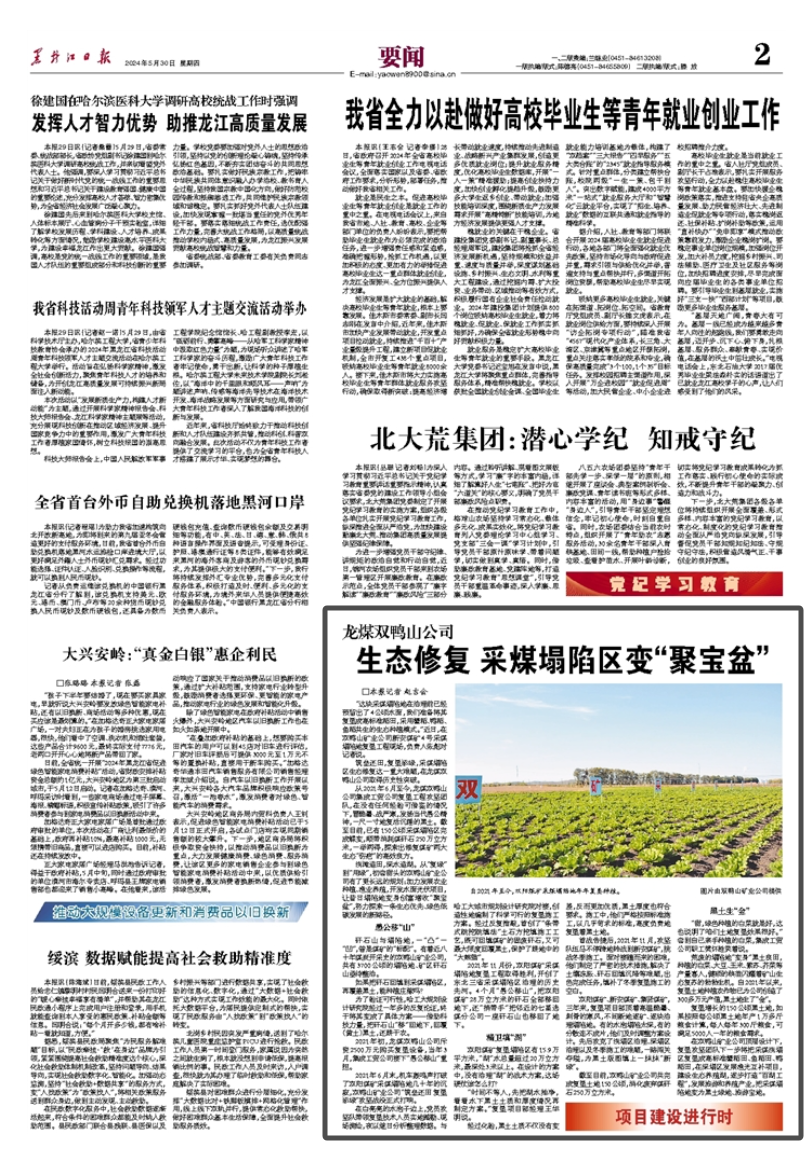 AGÊÖ»ú°æ¹ÙÍøË«Ñ¼É½¹«Ë¾£ºÉú̬ÐÞ¸´ ²ÉúËúÏÝÇø±ä¡°¾Û±¦Å衱